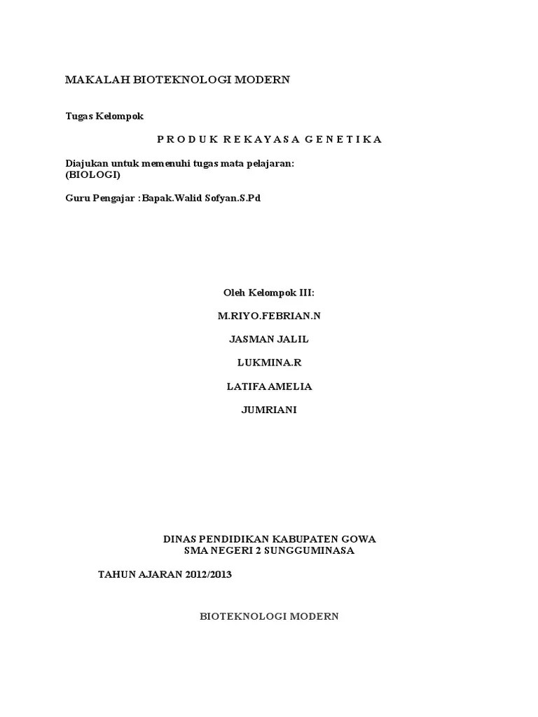 Contoh Makalah Bioteknologi Modern / Tempe - Tempe, oncom, tape, tuak, dan kecap.. Contoh produknya bir, wine, tuak, sake, yoghurt, roti, keju, tempe dll. Di bawah ini akan disebutkan beberapa contoh makanan yang merupakan hasil. Materi isolasi, amplifikasi dan visualisasi dna, elektroforesis serta mekanisme kerja pcr merupakan kajian bioteknologi modern yang dianggap sulit oleh 87% . Membuat klon bakteri yang mengandung dna rekombinan 6. Contoh pemanfaatan bioteknologi pangan dalam kehidupan sehari.
